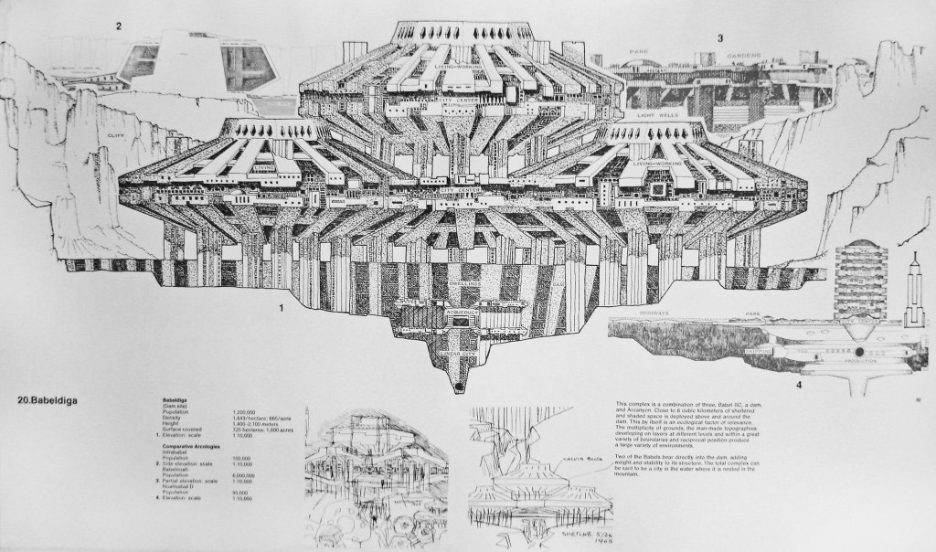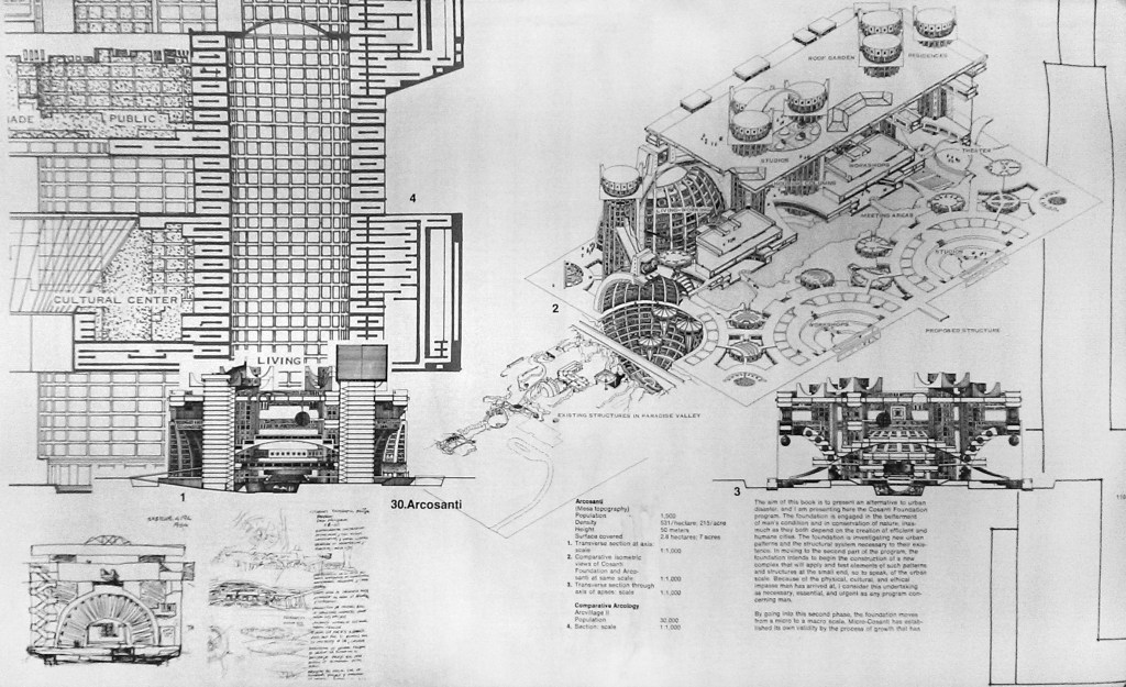We come now to the granddaddy king of the megastructure, the “prophet in the desert” himself: Paolo Soleri.